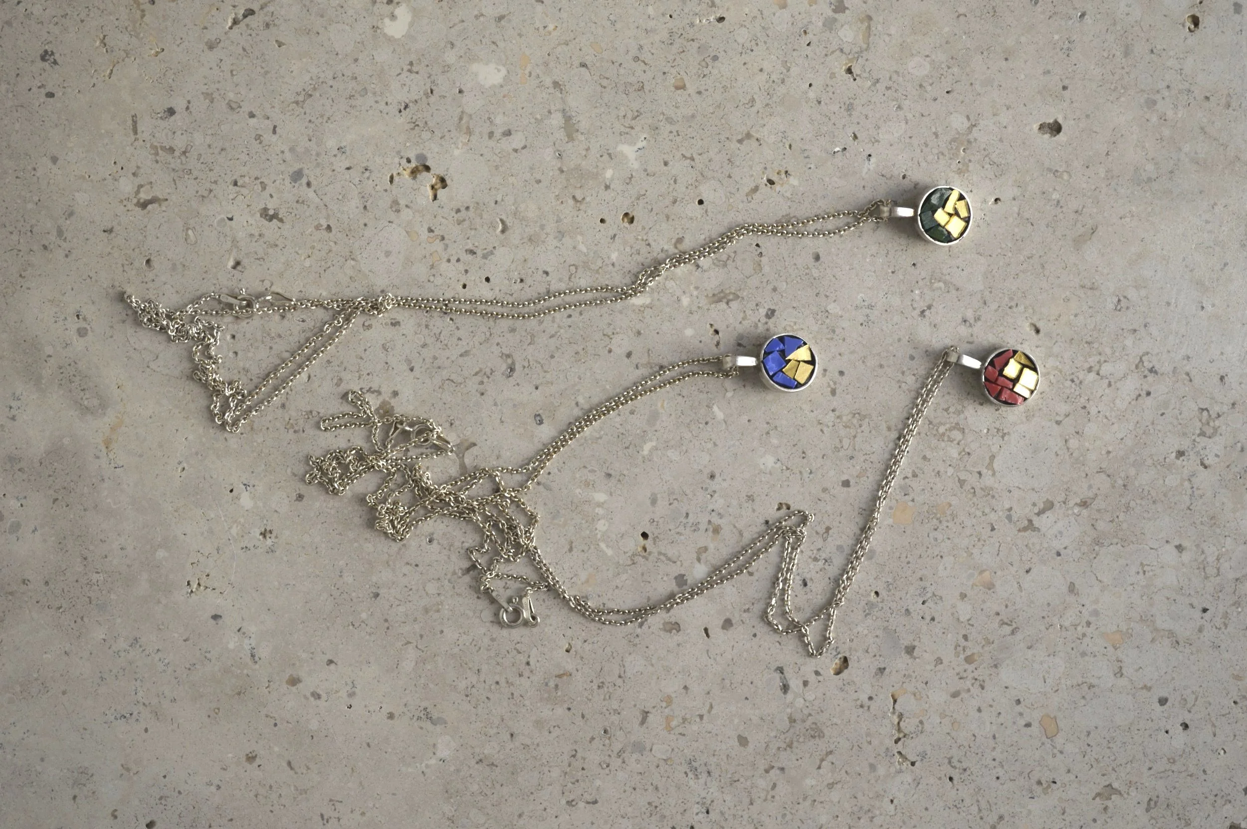 Este colgante combina, con un estilo contemporáneo, las técnicas tradicionales de la joyería y del mosaico. —